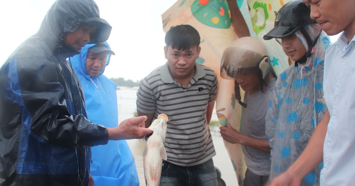 "Nhà tôi bị ngập hơn 1,5m, đồ đạc hư hỏng nhiều, gà vịt chết sạch. Nước vừa rút, có cá nhiều, tôi với anh em trong xóm ra đồng bắt, coi như vui một chút sau mấy ngày mưa lũ, kiếm thêm chút ít tiền", anh Lê Nha Da chia sẻ.