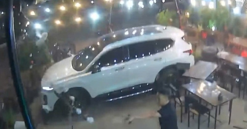 Theo camera an ninh ghi lại, khoảng 21h24 ngày 7/10, xe ô tô màu trắng chạy với tốc độ nhanh ngang qua trước quán Xóm Nhậu, xã Bình Dương, tỉnh Gia Lai (trước đây là thị trấn Bình Dương, huyện Phù Mỹ, tỉnh Bình Định). Ngay sau đó, xe này bất ngờ lùi lại rồi quay đầu lao thẳng vào quán.