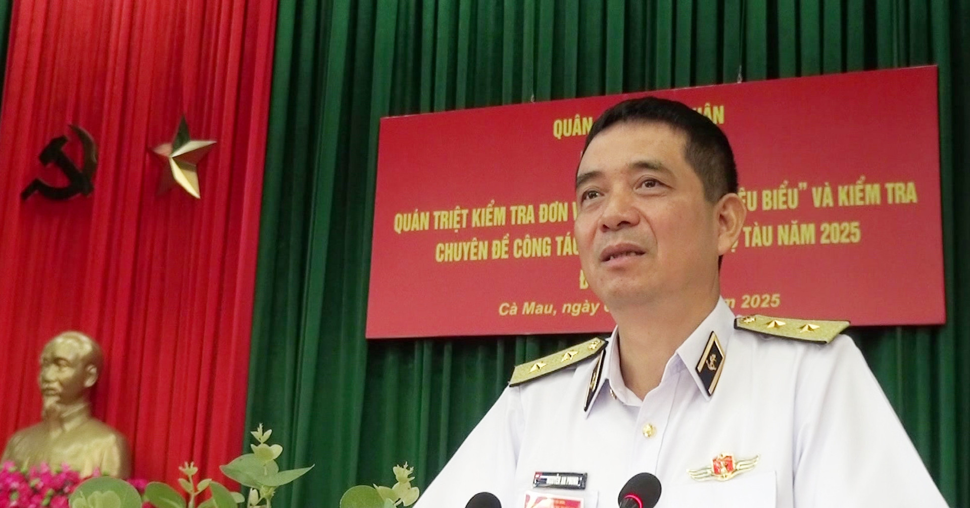 Ngày 6/10, tại Cà Mau, đoàn công tác do Phó Đô đốc Nguyễn An Phong, Chính ủy Hải quân, dẫn đầu đã kiểm tra năng lực đơn vị vững mạnh toàn diện và huấn luyện cán bộ tàu năm 2025 tại Vùng 5 Hải quân.