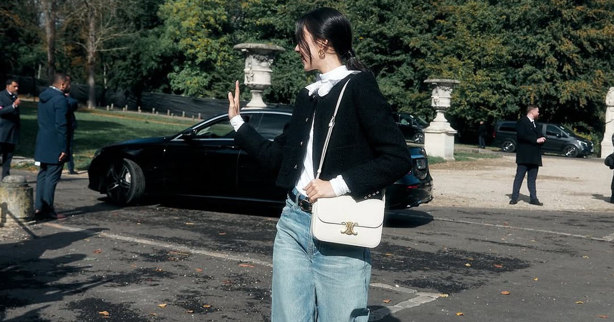 Quần denim xanh đen hay các món đồ tối màu khác (xám, nâu đất, than chì...) có thể sử dụng để phối cùng áo tweed mang sắc đen chủ đạo hoặc kết hợp áo để tạo hình ảnh tương phản - đen và vàng, đen và đỏ...