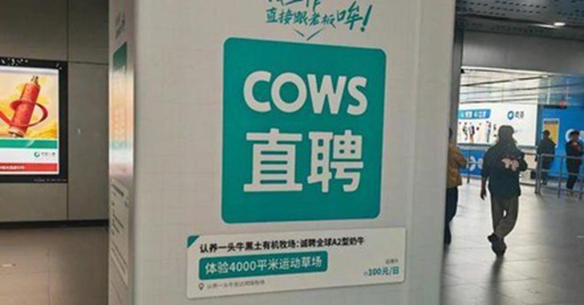 Theo trang Sina.cn, mạng xã hội Trung Quốc đang xôn xao tranh cãi về các áp phích quảng cáo với khẩu hiệu như "COWS tuyển dụng trực tiếp - Tìm việc, nói chuyện thẳng với sếp, moo!", hay "Nhảy việc thôi! Bò sữa ơi, nghe nói trang trại của mấy bạn không có nắng à?" xuất hiện tại nhiều ga tàu điện ngầm và khu dân cư ở Thượng Hải, Hàng Châu.