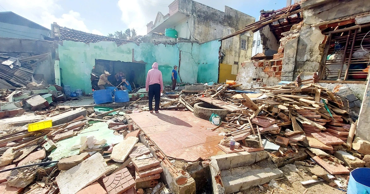 Tại thôn Quảng Vân, xã Tuy Phước, Gia Lai (trước đây thuộc H.Tuy Phước, tỉnh Bình Định cũ), mẹ con bà Nguyễn Thị Lan (58 tuổi) đang lặng lẽ gom từng tấm tôn méo mó, nhặt lại vài món đồ còn sót giữa đống hoang tàn. Căn nhà ba gian của bà, nơi từng là tổ ấm qua bao năm tháng, giờ chỉ còn trơ 4 bức tường và đống đổ nát.