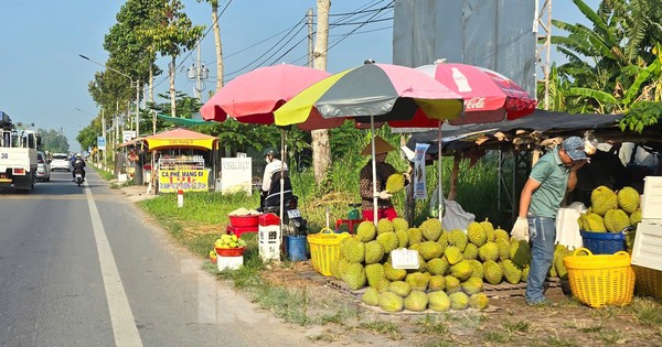 Vắng bóng thương lái thu mua nên nhiều nhà vườn đem sầu riêng ra bán lề đường với giá đa số ở mức 30.000 đồng/kg, trong khi cách đây hơn 1 tháng, giá bán tại vườn khoảng 60.000-70.000 đồng/kg.