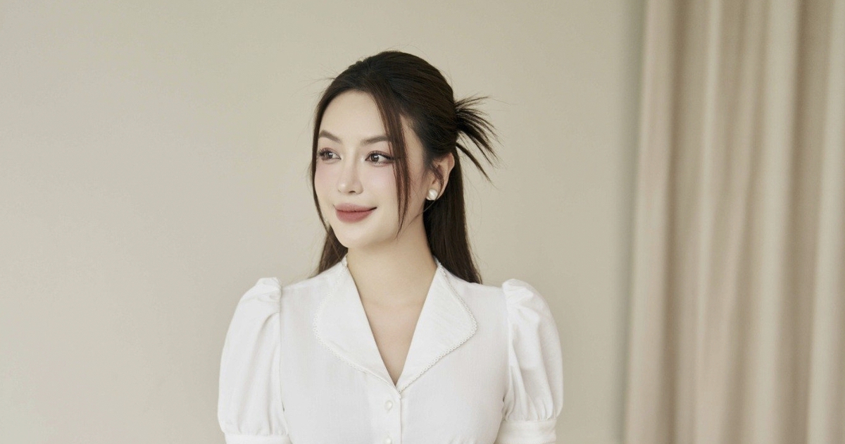 Một chiếc sơ mi trắng voan mỏng, tay dài bồng nhẹ cùng hàng khuy, viền bèo ở cổ và tay áo tạo cảm giác mềm mại, duyên dáng. Khi phối cùng quần tây màu xám ghi cao cấp, tổng thể trở nên sang trọng, chuyên nghiệp hơn bao giờ hết. Điểm xuyết thêm đôi khuyên tai to, cân bằng hoàn hảo giữa nét mạnh mẽ và mềm mại.