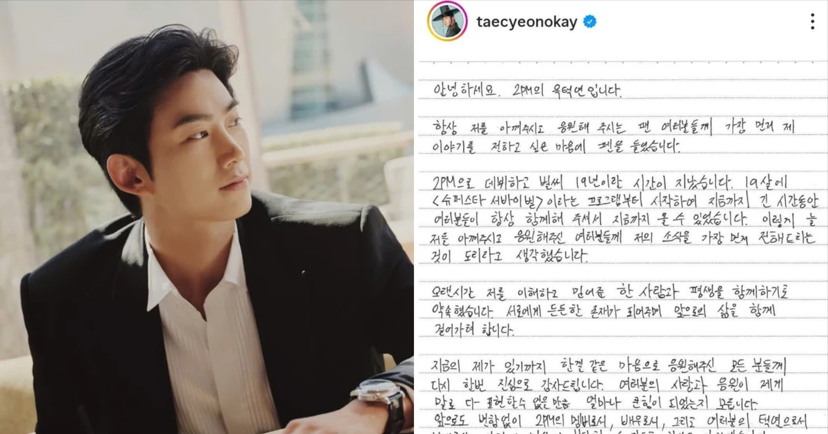HHTO - Ok Taecyeon (2PM) vừa khiến mạng xã hội bùng nổ khi thông báo sẽ kết hôn vào đầu năm 2026 với bạn gái ngoài ngành giải trí, chuyện tình ngọt ngào kéo dài nửa thập kỷ sắp bước vào chặng mới. Nam thần Gen 2 sắp trở thành "chồng người ta".
