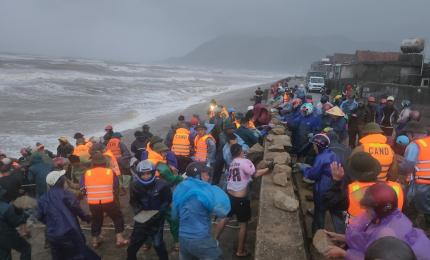 Sập mái kè biển ở Ninh Bình, huy động 1.200 người hộ đê
