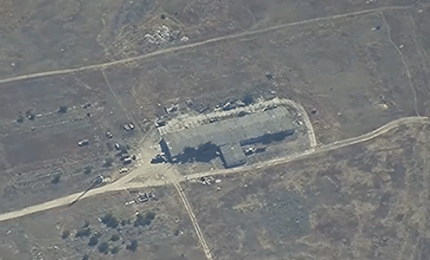 Bộ Quốc phòng Nga ngày 10/7 công bố video từ máy bay không người lái (UAV) trinh sát đang theo dõi khu nhà kho lớn tr