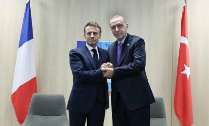 Khoảnh khắc bắt tay giữa Tổng thống Pháp Emmanuel Macron và Tổng thống Thổ Nhĩ