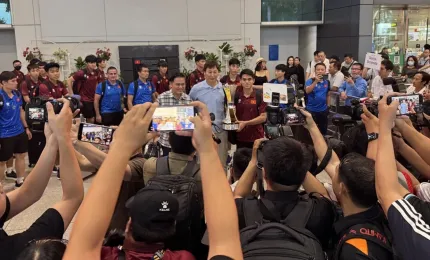 Chiều tối 30.7, đội tuyển U.23 Việt Nam đã trở về sân bay Tân Sơn Nhất (TP.HCM) sau hành trình bảo vệ ngôi vô địch U.