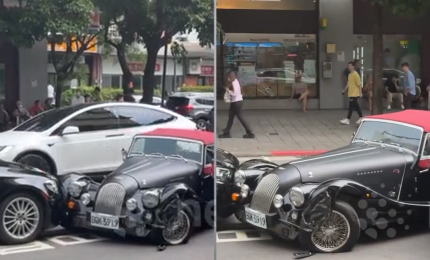 Khoảnh khắc xe cổ gần 5 tỷ đồng mất lái đâm liên tiếp 2 ô tô chờ đèn đỏ