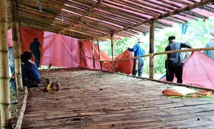 Đê sông Cung đoạn chảy qua xã Hoằng Châu (Thanh Hóa) bị sạt lở mái đê.