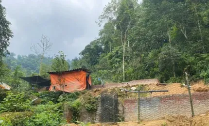 21h46, sau trận mưa lớn, một phần quả đồi tại thôn Khe Qué, xã Xuân Ái (xã Viễn Sơn, huyện Văn Yên, tỉnh Yên Bái cũ)
