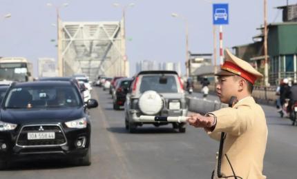 Cảnh sát lập biên bản xử lý tài xế xe ôm về lỗi chở quá số người quy định, chở người ngồi trên xe không đội mũ bảo hi