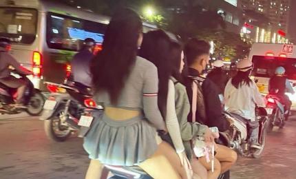 Phạt tài xế xe ôm 'kẹp' 4 cô gái trên đường Trần Duy Hưng