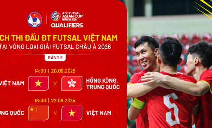 Đội tuyển futsal Việt Nam sẽ gặp đương kim á quân Thái Lan ngay vòng bảng vòng chung kết Giải futsal châu Á 2026 tại