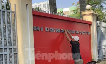TPO - Chiều 26 và sáng 27/6, các đơn vị thi công tiến hành sơn sửa, chỉnh trang mặt tiền và lắp bảng tên tại loạt trụ