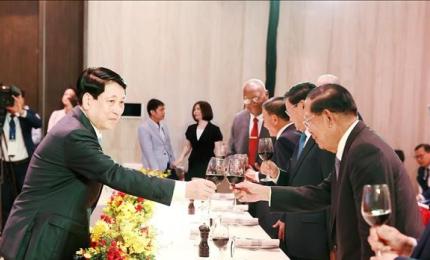 Chủ tịch nước Lương Cường có mặt tại thảm đỏ, nồng nhiệt chào đón Tổng thống Anura Kumara Dissanayaka dẫn đầu Đoàn cấ