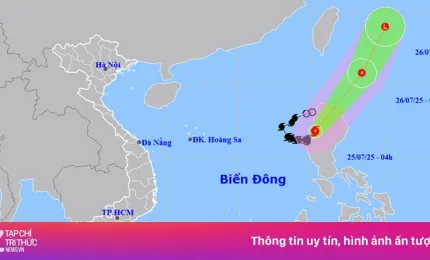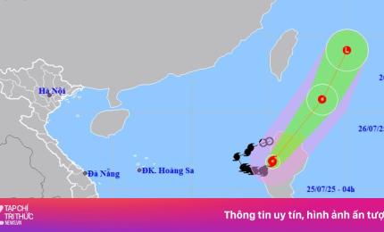 Theo Trung tâm Dự báo khí tượng thủy văn Quốc gia, hồi 13h ngày 25/7, vị trí tâm bão ở vào khoảng 19,8 độ Vĩ Bắc; 121
