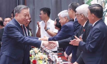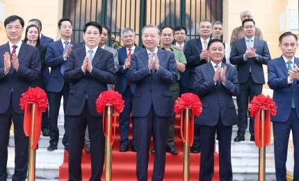 (Dân trí) - Trong buổi tham quan Trung tâm Hội chợ Triển lãm Quốc gia, Tổng Bí thư Tô Lâm và Thủ tướng Phạm Minh Chín