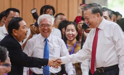 Bà Ngô Phương Ly, Phu nhân Tổng Bí thư Tô Lâm sáng nay đã tiếp bà Leyla Aliyeva, Phó Chủ tịch Quỹ Heydar Aliyev đang