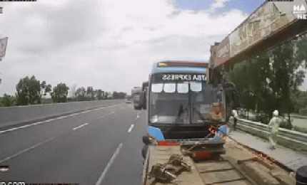 BRAZIL - Một người phụ nữ may mắn thoát nạn chỉ vài giây trước khi xe đầu kéo mất lái đâm xuyên qua một nhà hàng nằm