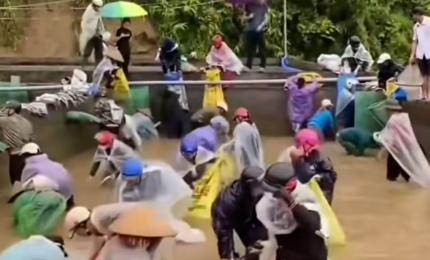 Cá tầm tràn khỏi ao theo dòng nước lũ, người dân Đắk Lắk liều mình lao xuống bắt