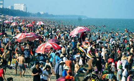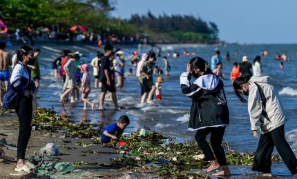 Bất chấp biển cấm, người dân vẫn xuống bãi tắm tự phát ngập rác ở Nam Định