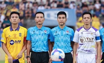 Trận đấu ngày 10/5 trên sân Vinh chứng kiến trọng tài thứ tư Việt Bảo quên luật ở phút 83, khi Hà Nội FC m