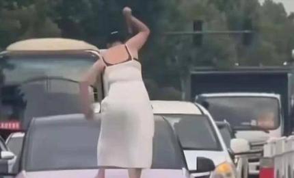 Chứng kiến cảnh người phụ nữ cầm gậy trèo lên đầu chiếc xe ô tô rồi đập kính chắn gió, nhiều người không khỏi sửng số