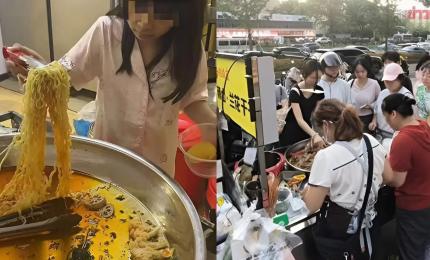 TRUNG QUỐC - Đoạn clip bé gái ở Hồ Nam vô tư ngồi thưởng thức đồ ăn còn thừa lại, chưa bán hết tại quầy hàng của bố m