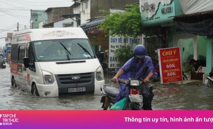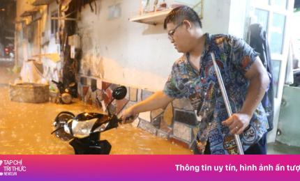 Bì bõm trên nhiều tuyến đường trung tâm TP HCM tối cuối tuần, xe chết máy, nước tràn vào quán