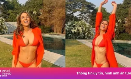 Elizabeth Hurley thu hút khi khoe thân hình bốc lửa trong trang phục bikini hai mảnh.