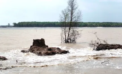 TPO - Gió chướng từ biển thổi vào mang theo vị mặn chát phủ lên không khí ở cửa biển Hố Gùi (xã Tân Tiến, tỉnh Cà Mau