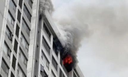 Lửa kèm theo khói đen ngùn ngụt bất ngờ bốc lên từ tầng cao của một chung cư ở TPHCM.