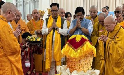 Hàng ngàn tăng ni, phật tử, người dân đến chùa Thanh Tâm (Phật Cô Đơn) chiêm bái xá lợi Đức Phật vào sáng 3-5.