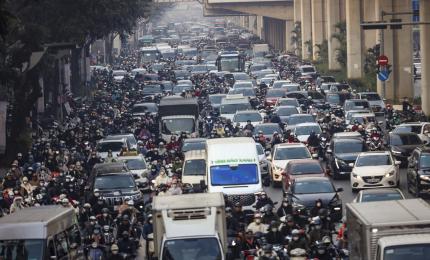 Dù thời tiết đã tạnh mưa từ trưa 1.10, nhưng nhiều tuyến đường tại Khu đô thị tây Hồ Tây (Hà Nội) vẫn ngập trong biển