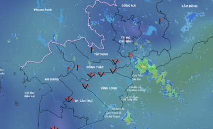 Hiện các khối mây dông đang gây mưa cho khu vực Bình Dương (cũ) và Tây Ninh mở rộng về trung tâm TP.HCM, dự báo tối n