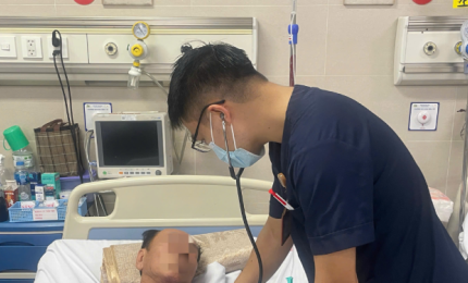 Nam bệnh nhân vào cấp cứu tại Bệnh viện Thanh Nhàn do xuất hiện các dấu hiệu đột quỵ khi đang uống bia.