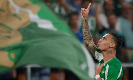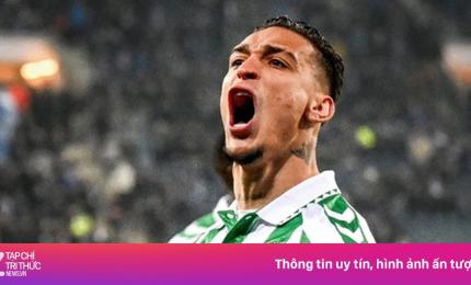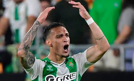 Phút 35, từ đường chuyền dài của tiền vệ Marc Roca, Antony băng xuống bên trái, đến rìa cấm địa.