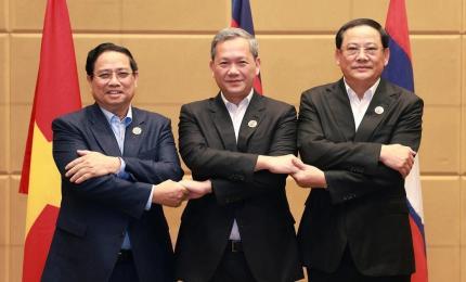 (Dân trí) - Sáng 27/10, Thủ tướng Phạm Minh Chính cùng Thủ tướng Campuchia Hun Manet và Thủ tướng Lào Sonexay Siphand