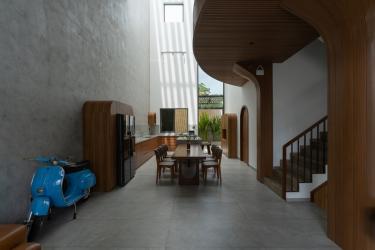 Tổng thể công trình cân bằng giữa không gian xây dựng và khoảng mở, giữa vật liệu thô và yếu tố tự nhiên, đảm bảo phù hợp khí hậu và dễ ứng dụng trong nhà ở vùng nhiệt đới.