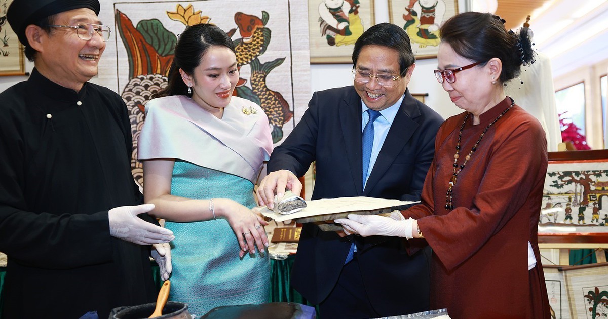 Trong khuôn khổ chuyến thăm chính thức Việt Nam của Thủ tướng Thái Lan Paetongtarn Shinawatra, chiều tối 15.5, tại Trụ sở Chính phủ, Thủ tướng Phạm Minh Chính đã cùng Thủ tướng Thái Lan tham quan triển lãm các sản phẩm thủ công mỹ nghệ đặc sắc của Việt Nam.