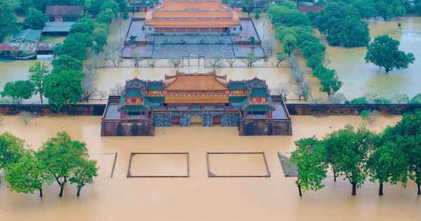 Những hình ảnh từ trên cao ghi lại trong ngày 28/10 cho thấy toàn bộ khu vực Đại Nội và các lăng tẩm ở Huế đang chìm trong biển nước đục ngầu.