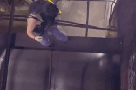 | Clip được Zemfira Mukhtarov đăng trên TikTok khi cô bé đi bộ dọc thanh sắt hẹp ngay trên nóc chuyến tàu điện ngầm đang chạy. |
