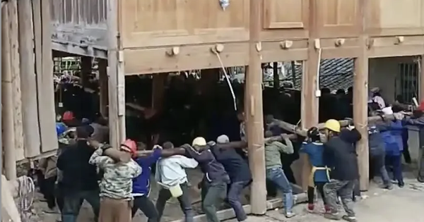 Mới đây, một đoạn video ghi lại cảnh dời nhà ở tỉnh Quý Châu (Trung Quốc) thu hút sự chú ý của cư dân mạng đất nước tỷ dân. Trong video, hơn 200 người dân cùng nhau nâng một ngôi nhà gỗ và từ từ di chuyển đến vị trí mới cách đó 30 m, tạo nên một khung cảnh ngoạn mục.
