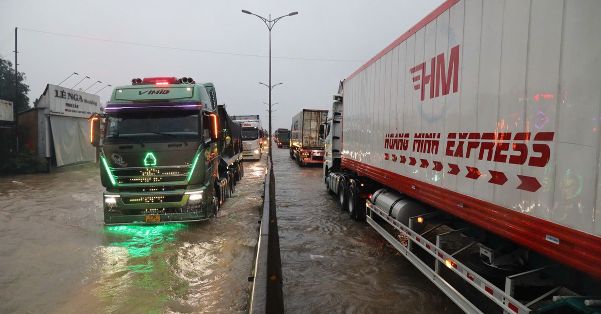 Ngập nước mặt đường gây tắc đường tại 7 điểm (Km5+050, Km5+870, Km7+500, Km10+450, Km15+750, Km16+150, Km43+300), hiện nay đang tổ chức rào chắn, phân luồng phương tiện đi qua hệ thống đường địa phương.