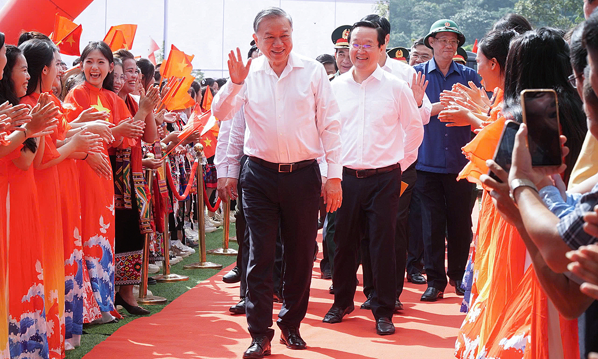 Phát biểu tại buổi lễ, Tổng Bí thư Tô Lâm nhấn mạnh Đảng và Nhà nước luôn coi giáo dục là quốc sách hàng đầu, là động lực then chốt cho phát triển bền vững. Ông khẳng định việc đầu tư xây dựng 248 trường nội trú liên cấp là chủ trương đúng đắn, nhân văn và thể hiện sự quan tâm đặc biệt của Đảng, Nhà nước với đồng bào vùng biên giới.