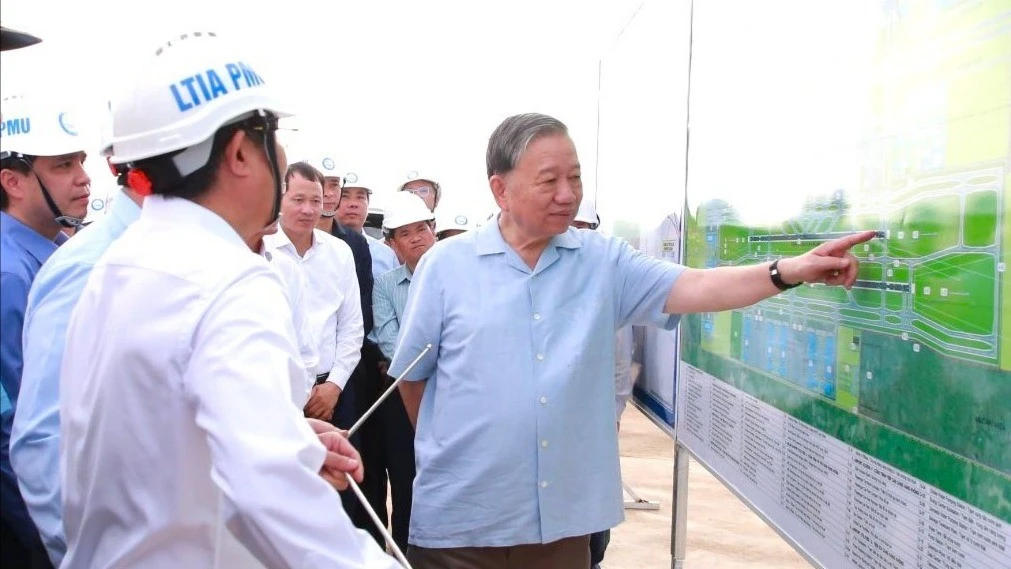 TPO - Tại công trường thi công dự án Cảng hàng không quốc tế Long Thành (tỉnh Đồng Nai), Tổng Bí thư Tô Lâm đã nghe chủ đầu tư và các nhà thầu báo cáo tiến độ thực hiện dự án.