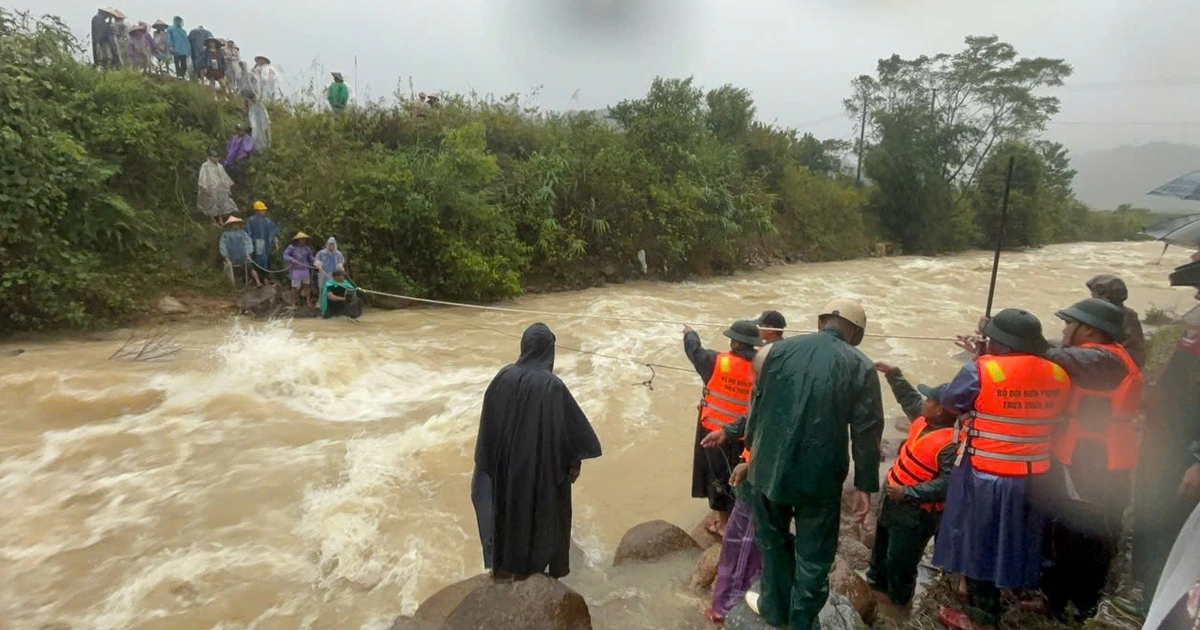 Chiều nay (29.10), tại các xã miền núi của TP.Huế, hàng trăm hộ dân bị cô lập do nước lũ từ đầu nguồn chảy mạnh, lực lượng biên phòng đã có mặt kịp thời, dùng dây thừng để chuyền gạo, mì tôm cho người dân.