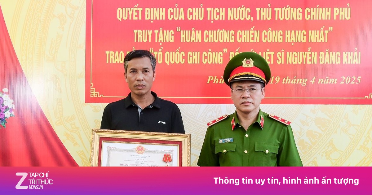 Trung tướng Nguyễn Văn Long, Thứ trưởng Bộ Công an, đã trao Huân chương chiến công hạng Nhất và bằng 'Tổ quốc ghi công' cho thân nhân Thiếu tá, liệt sĩ Nguyễn Đăng Khải.